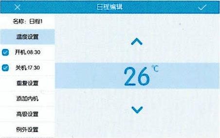 每天的日程前提设置,到时自动开启,不再频繁开关每台空调。