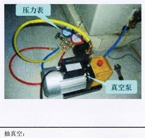 外机安装完毕后在充填冷媒前需要对冷媒管进行抽真空,把管内的空气抽出,保持管内干燥、无水分,否则空气和水会与冷媒混合产生冰晶,严重的会造成设备损坏。