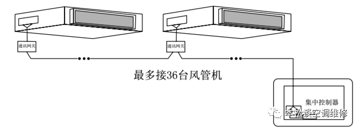 (2)、当集中控制器接入单元机机组网络时,按照图示连接网络。集中控制器须串联接于最后一台单 元机内机,并与通讯线一同在 A3、B3 接口接入匹配电阻。集中控制器的 A3、B3 接口和单元机 A、B 接 口需一一对应连接。