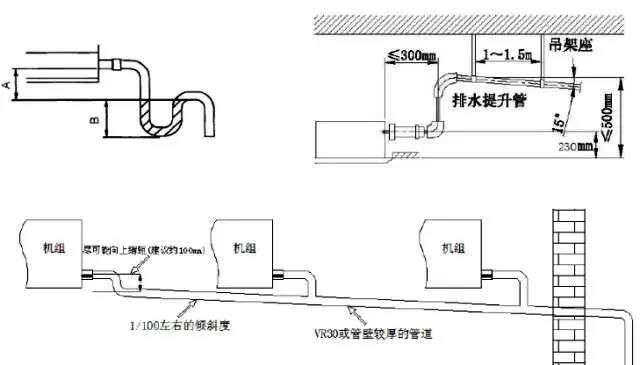1、防凝露材料厚度在10mm以上且阻燃级别需达到B1级或以上;2、排水管最高点应设通气孔,同时需要注意的是带辅助提升排水泵的排水支管,严禁设置排气孔。3、为了防止排水管向下弯垂,每1~1.5m要用吊架等器件辅助固定;4、凡不是整管保温的,一定要将切割开的部分重新用胶粘。