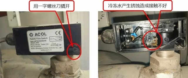 机组调试时报水流开关保护,故障点及解决方法: