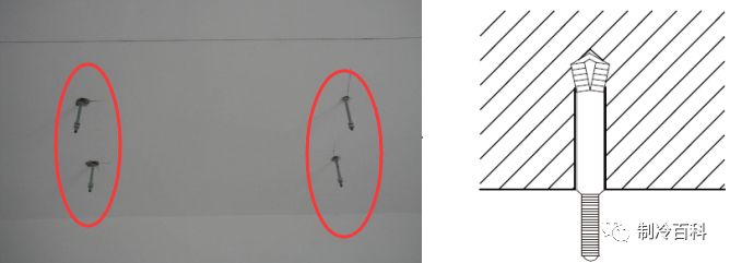 a、做好记号,用电钻打孔。室内机吊装位置应确保空调冷凝水能排出,风管安装方便且送风顺畅。
