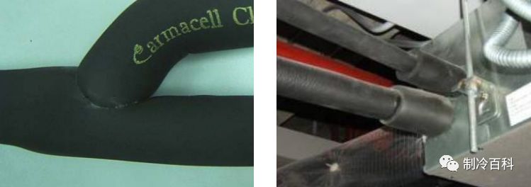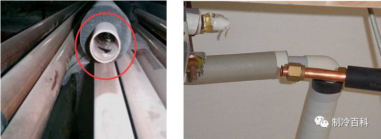 冷媒管道保温材料应使用闭孔发泡保温材料,难燃B1级,耐热性超过120℃的材料。铜管外径D≤12.7MM时,保温层厚度&=15MM以上;铜管外径D≥15.88MM时,保温层厚度&=20MM以上。冷凝水管应采用难燃B1级橡塑保温筒保温,保温层厚度通常为10MM。管道穿墙须套管。