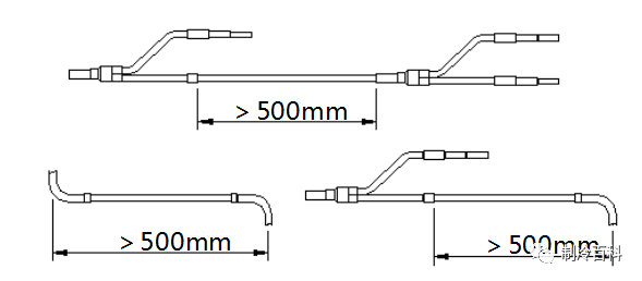 b、铜管转弯处与相邻分歧管间的水平直管段≥1M。