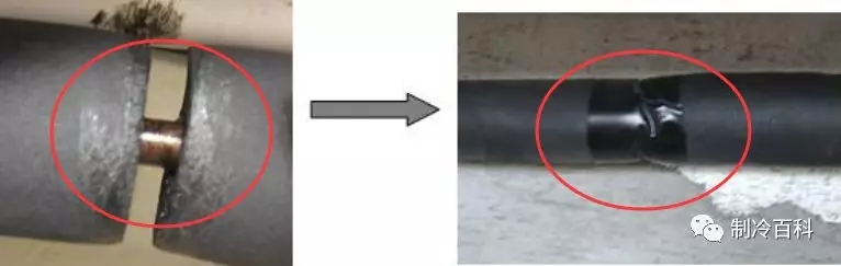 铜管径冷媒管连接,建议采用胀管方式,禁止用扩喇叭口方式连接。