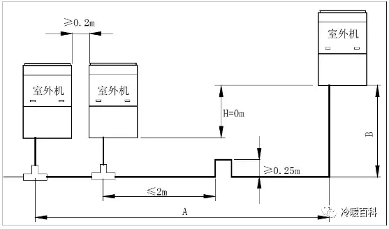 2、当模块间的距离超过2m时,应在系统气管加倒“U”型阻油弯。