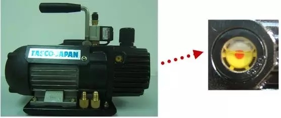 5、抽真空前观察泵体游标指示是否满足要求(1/3~2/3)。