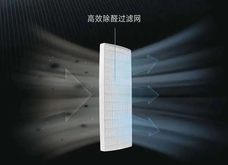 · 进风口全覆盖专业除醛滤网,固化分解空气内的甲醛分子;