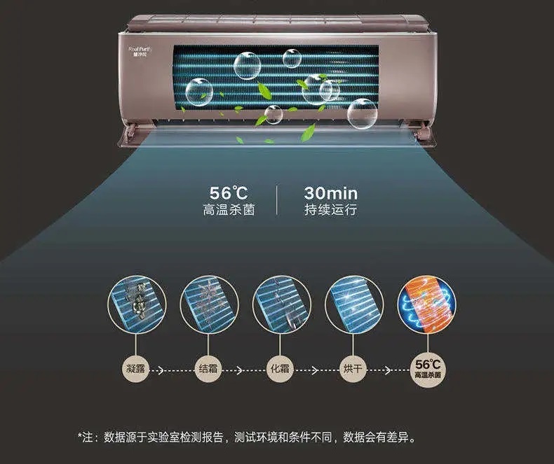 · 挂机通过凝露、结霜、化霜、烘干、高温杀菌五重步骤深层清洁,强力除尘,高温除菌,让空调出风更洁净。