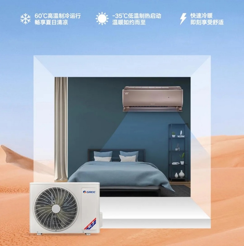 · 搭载格力第二代冷酷外机,轻松应对异常天气,实现60℃高温制冷运行,-35℃低温制热启动。