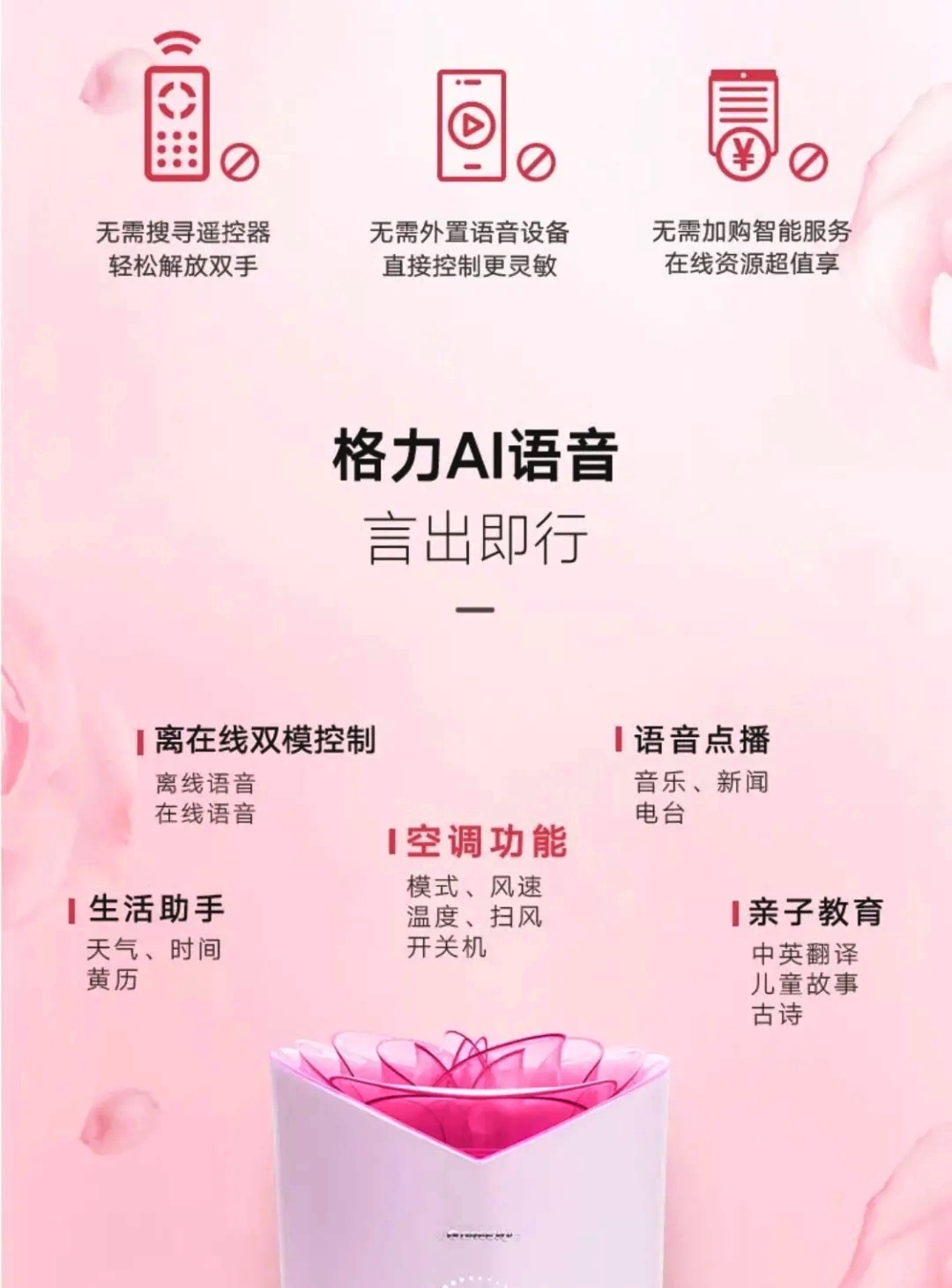 格力·玫瑰,连接智能语义理解平台,广泛语义轻松解析。丰富语音服务实时在线获取,人机交互更自在随心。智慧生活,开口即来。