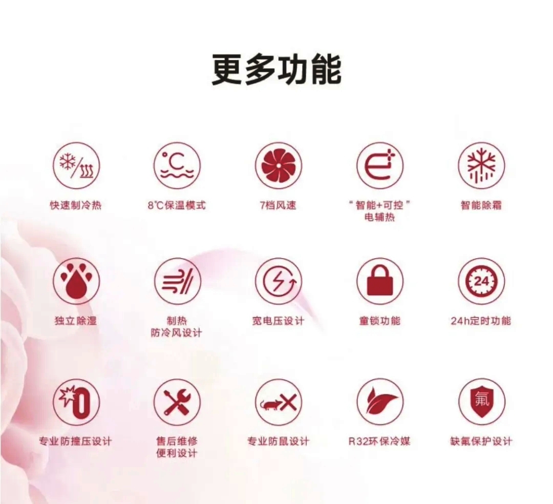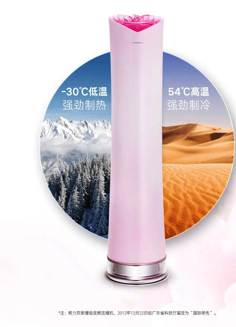格力·玫瑰搭载双级增焓变频压缩机* -30℃至54℃宽温范围稳定运行。