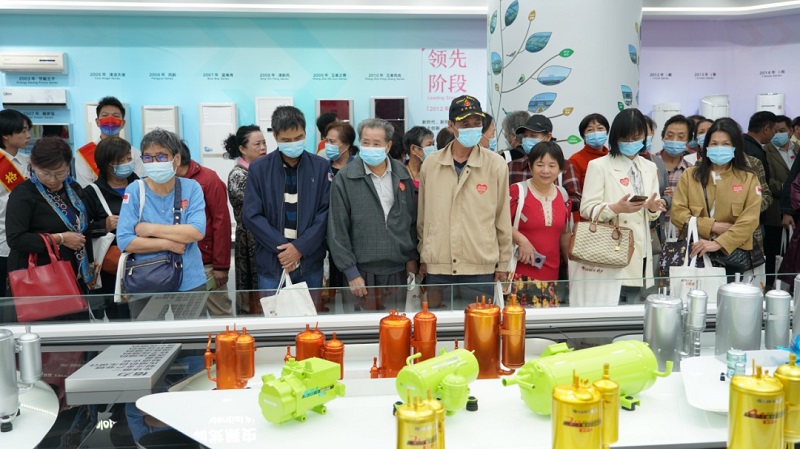 为了让退休员工切实感受格力在过往30年中的成长,本次活动特别安排了科技展厅参观环节。走过不同板块时,一件又一件格力成果迎面而来,“你们看,这项技术我还参与过它的研发,如今它都已经更新到四代了”,一位退休员工骄傲地说道。当主持人说到“如今格力电器的创新成果已经遍及全球,服务4亿多用户”时,许多老员工脸上露出了灿烂的笑容,他们为格力电器今天取得的成绩而骄傲,也为曾经参与这一奋斗过程而自豪。