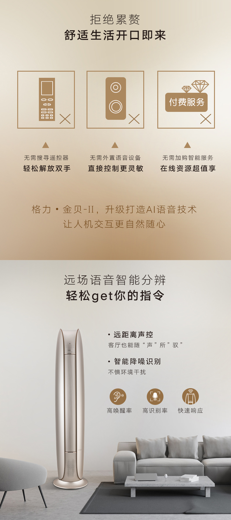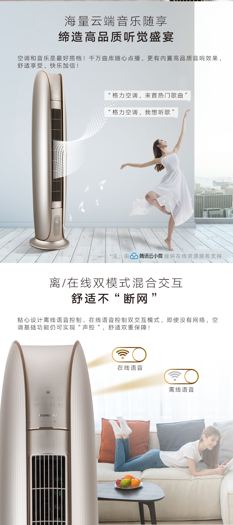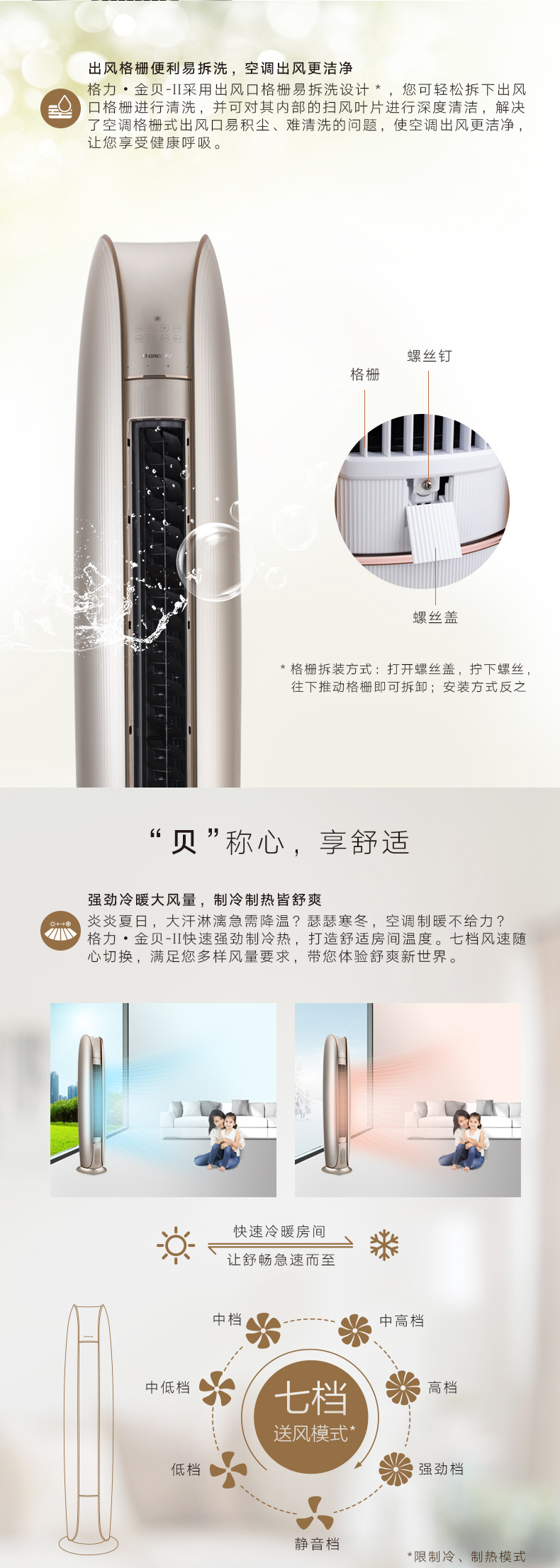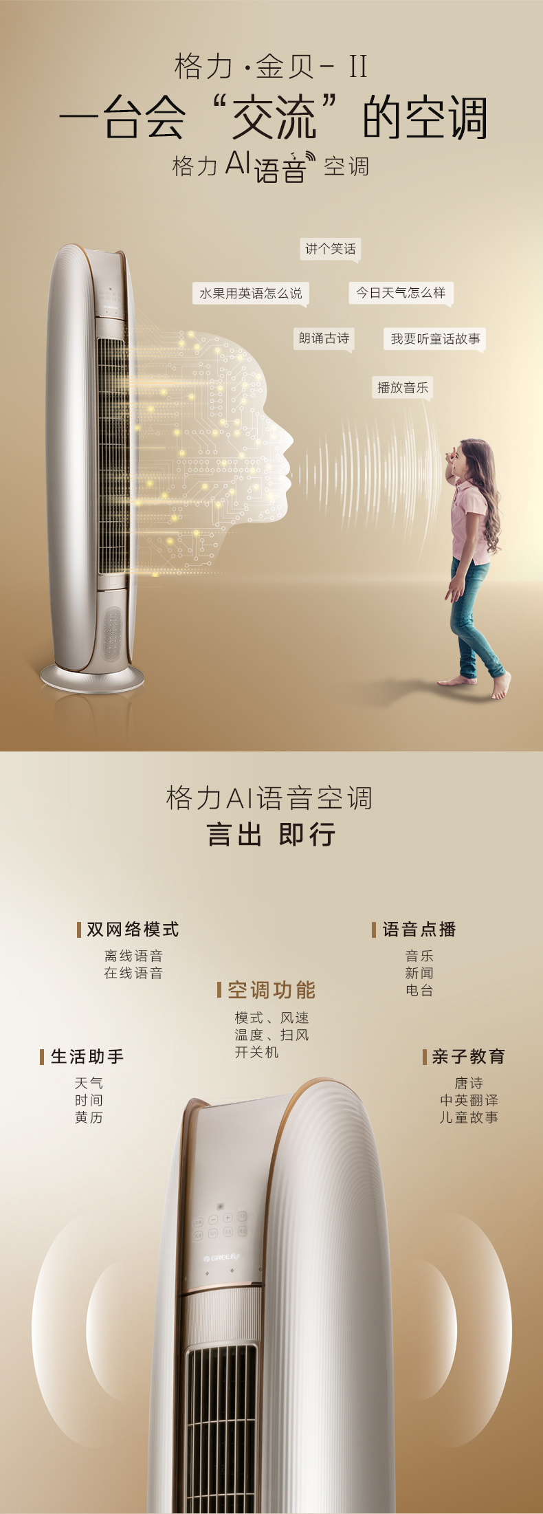 格力金贝立柜式家用分体空调2匹50机适用23-34平米,3匹72机适用32-50平米,变频1级,一台会说话唱歌的空调,蒸发器自洁出风,格栅易拆洗,广域扫风