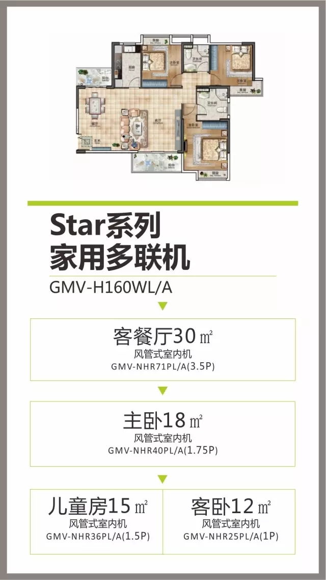 ▲采用全直流变频技术的star系列H160WL/A型格力家用中央空调多联机外机,IPLV最高达6.6,搭配四台GMV-NHR系列室内机,节能技术行业领先,实现快速制冷热以及除湿再热功能,完美应对霉雨季节。