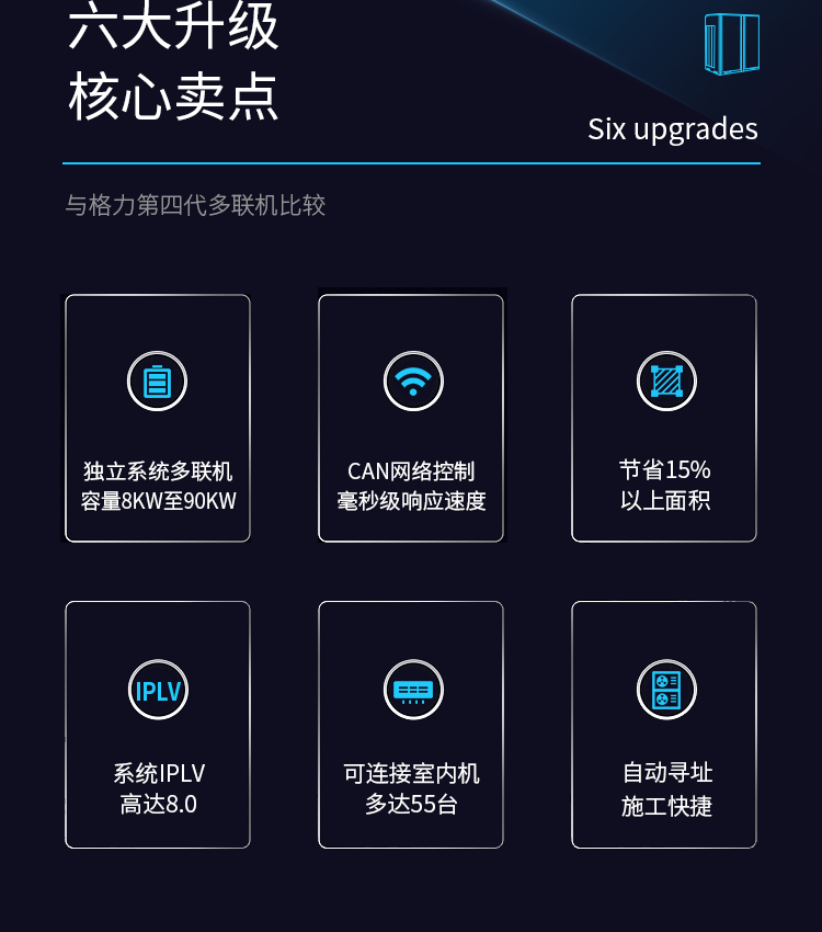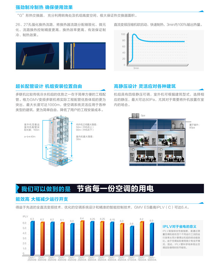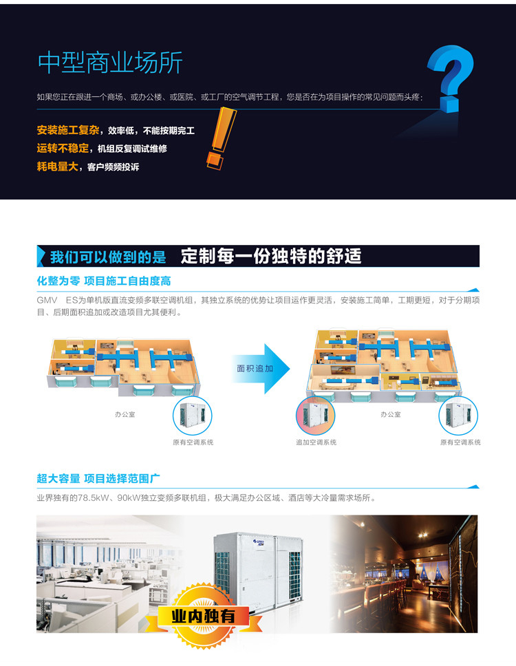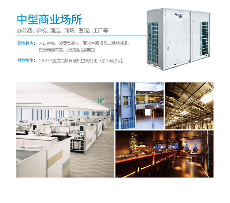 格力商用多联机GMV ES直流变频多联机中央空调为中型商业场所专用、具有大冷量节能高效、直流变频、过冷度控制技术、制热不换向回油等优点
