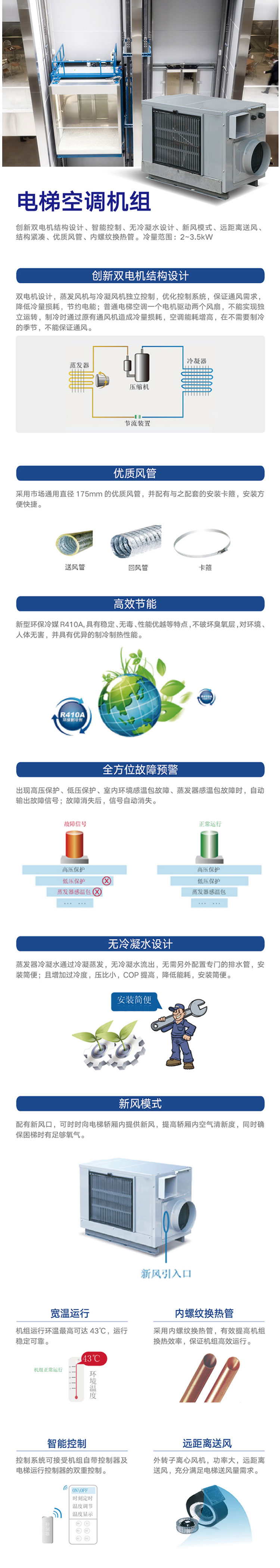 格力电梯空调品牌创新双电机结构设计优质风管高效节能全方位故障预警无冷凝水设计还带新风哟宽温运行智能控制远距离送风
