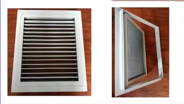 单层百叶风口可调上下风向,回风口可与风口过滤网合用,节片角度可以调节,叶片间有ABS塑料固定支架。固定式过滤网在清洗时可由滑道上取出过滤网,清洗后再从滑道推入后继续使用。
