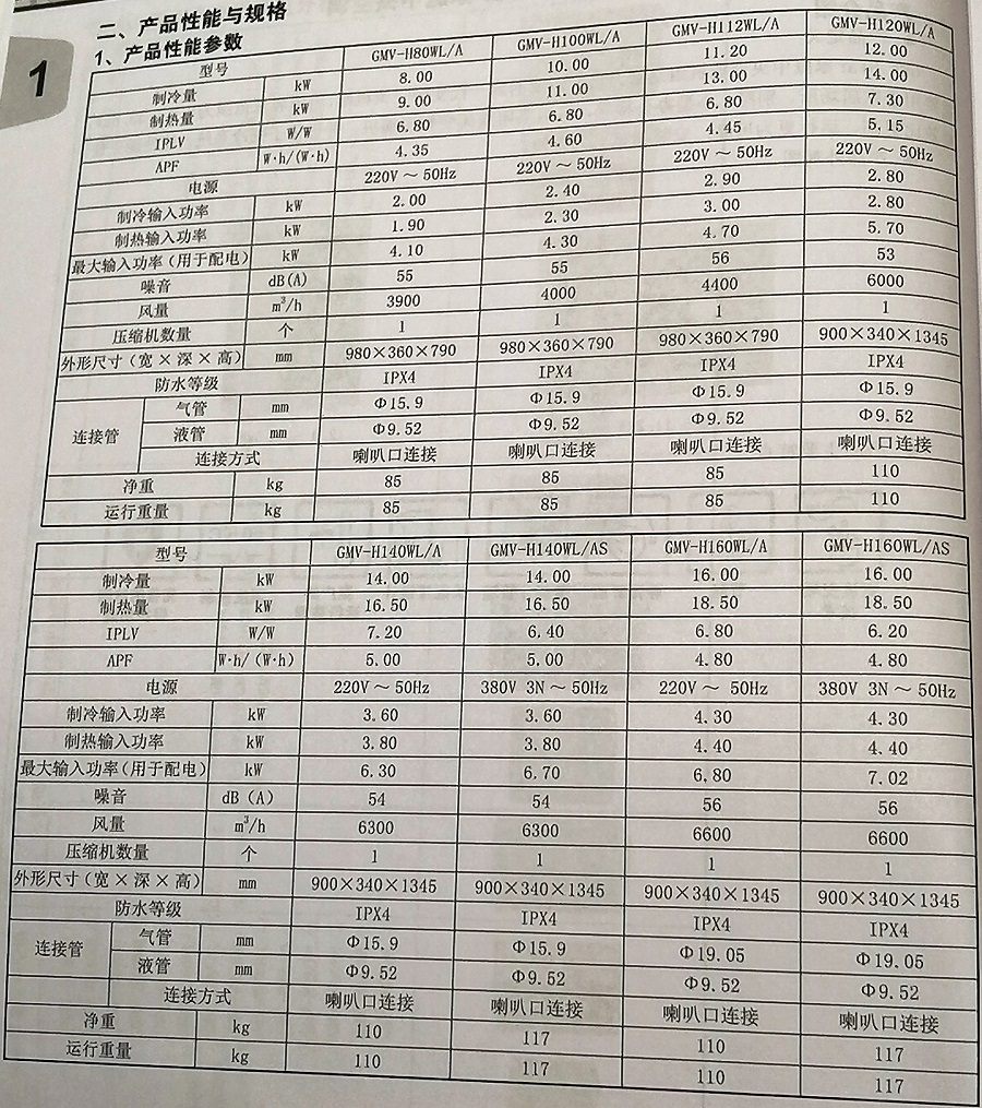 GMV star系列格力家用中央空调制热制冷范围及产品性能规格介绍