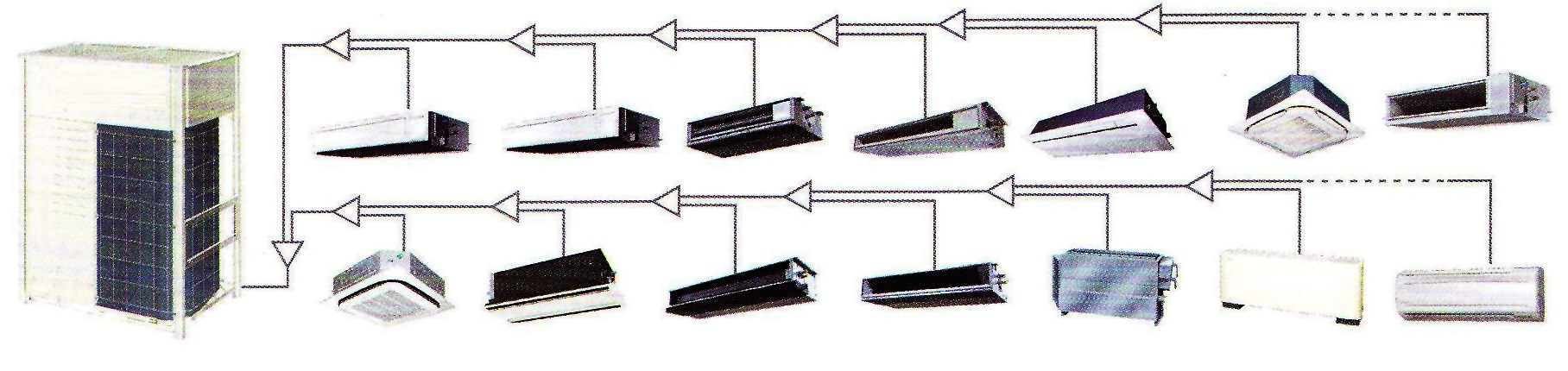 要理解上述问题首先要理解什么是中央空调。中央空调的概念是个很大的概念,分类的规范不同,所包括的范围也不同;有变频的,定频的;如风冷的与水冷的;有氟系统的与水系统的等等,在家用中央空调中也都是常见分类方式。但是都根本上都用于大型建筑,一个空调主时机衔接多个室内机,室外主机普通都有依据室内负荷调理输出功率的功用。