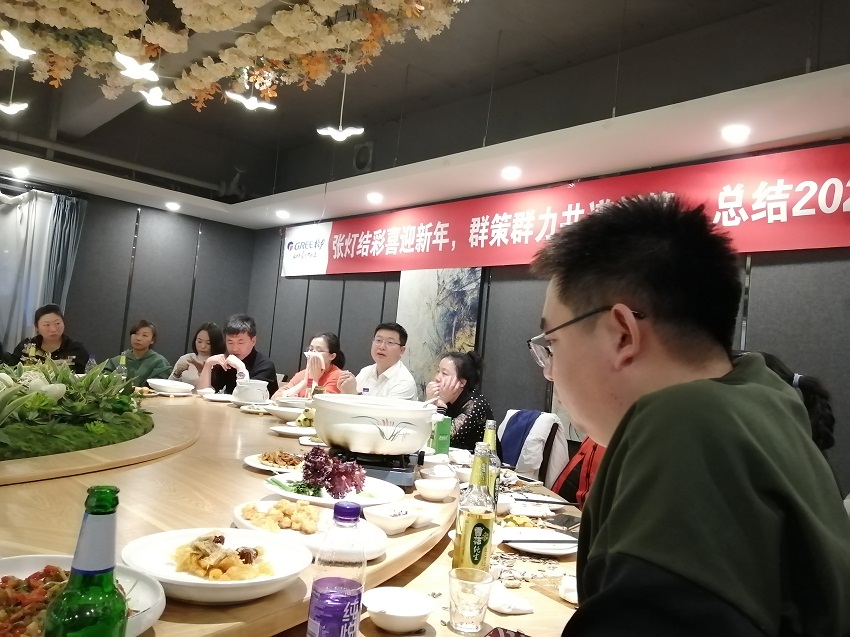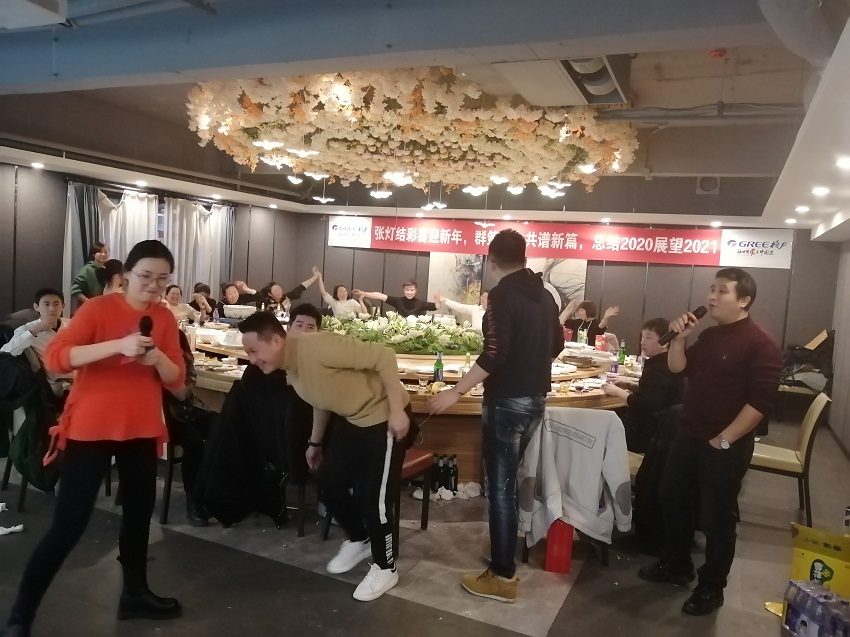 张灯结彩迎新,群策群力共谱新篇,总结2020展望2021,沈阳格力中央空调电器总代理专卖店(沈阳董明珠店)会餐凝聚晚会